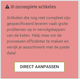 Niet iedere koper stelt dezelfde eisen aan de artikelgegevens. Zo kan voor de één een hoogte erg belangrijk zijn terwijl voor de ander de locatie van de barcode van groot belang kan zijn. Wij verzamelen deze wensen uit de markt en proberen deze goed inzichtelijk te maken via jouw catalogus pagina.