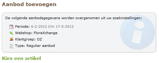 FloraXchange laat zien welke waardes hij standaard over gaat nemen in het aanbod.